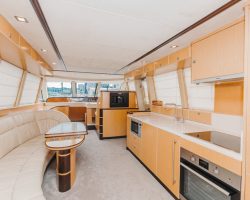 На флайбридже располагается стол на 10 человек, гриль-зона, холодильник, ледогенератор.